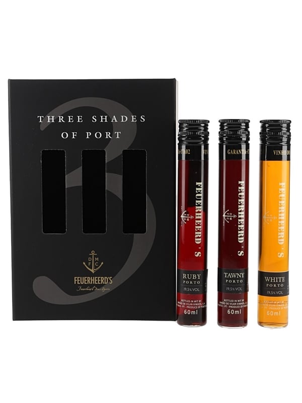 Feuerheerd's Three Shades of Port includes three 6cl bottles of Ruby, Tawny and White port.