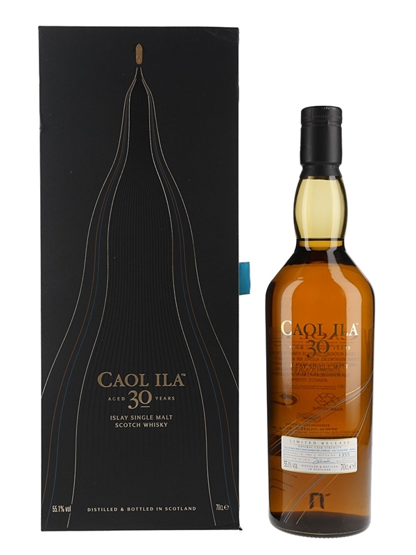 A bottle of Caol Ila 30 Year Old Islay Single Malt Scotch Whisky. This was distilled in 1983 and bottled at natural cask strength in 2014 for Diageo's Special Releases series.