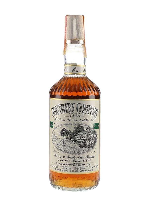 A bottle of Southern Comfort, The Grand Old Drink of the South. This was bottled at 43.8% ABV for sole agents for Great Britain Charles Kinloch & Co Ltd, we estimate in the 1970s.
