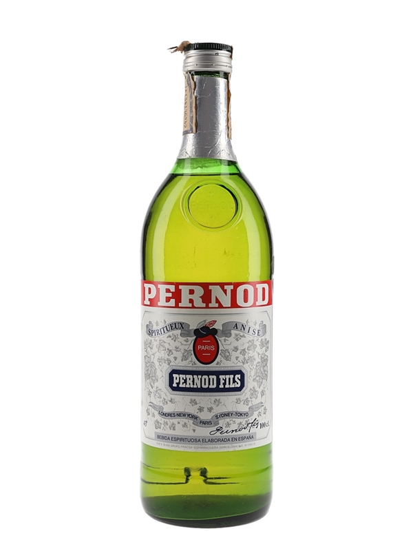 A litre bottle of Pernod Fils Spiritueux Anise produced in Tarragona, Spain. We estimate this was bottled in the 1980s.