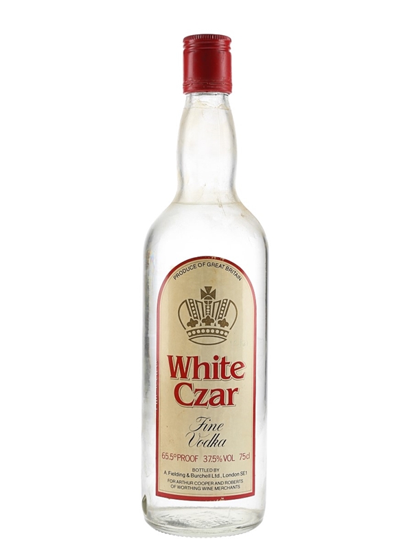 A bottle of White Czar Fine Vodka bottled by A. Fielding & Burchell Ltd. for Arthur Cooper and Roberts. we estimate this was bottled in the 1980s.