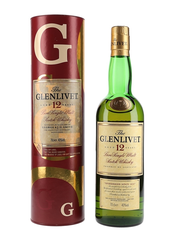 A bottle of The Glenlivet 12 Year Old Pure Single Malt Scotch Whisky. We estimate this was bottled in the 2000s.