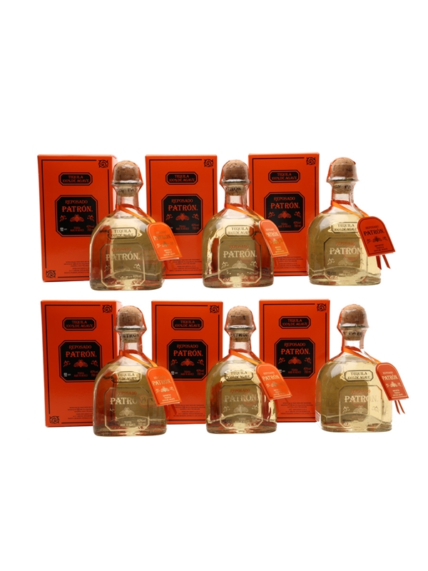 This lot contains six bottles of Patron Reposado, a premium Tequila made from 100% Weber blue agave.