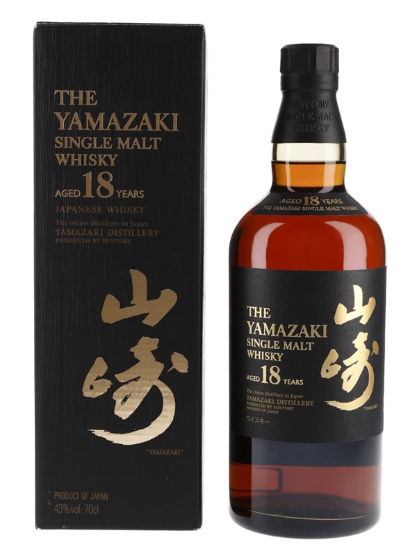 A bottle of The Yamazaki 18 Year Old Single Malt Japanese Whisky, imported to the UK by Morrison Bowmore Distillers Ltd.