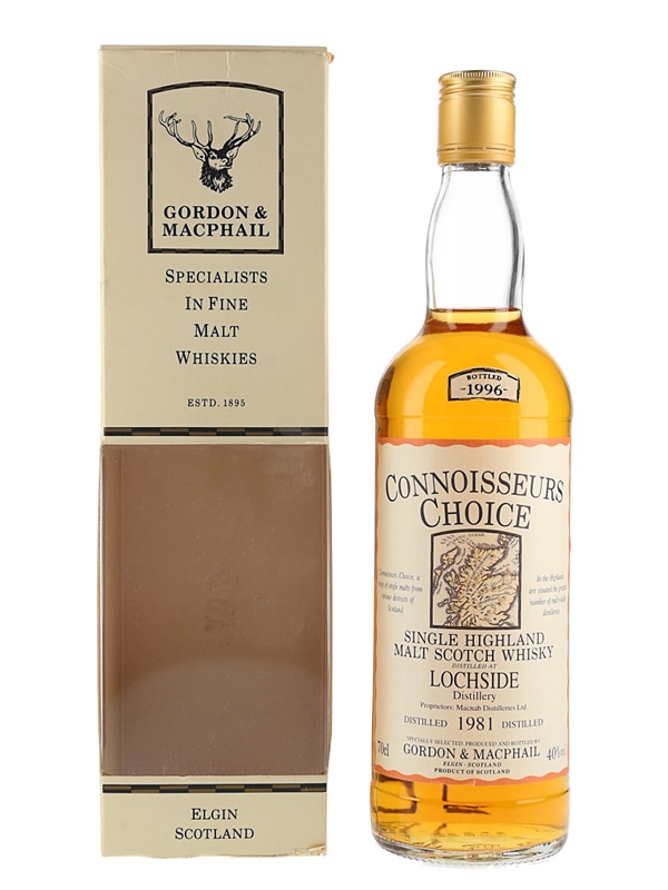 A bottle of Lochside 1981 Single Malt Scotch Whisky, bottled in 1996 by Gordon & MacPhail.