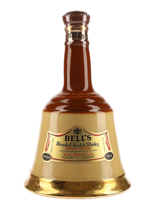 A bottle of Bell's Specially Selected Old Scotch Whisky produced by Arthur Bells & Sons Ltd. and presented in a brown ceramic Wade decanter. This preceded the Christmas series and is of a slightly narrower shape than later editions. We estimate this was bottled in the 1980s.