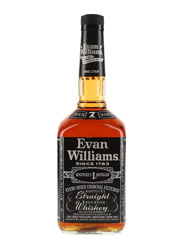 A bottle of Evan Williams 7 year old Sour Mash, bottled at 45% ABV. We estimate this was bottled in the 1990s.