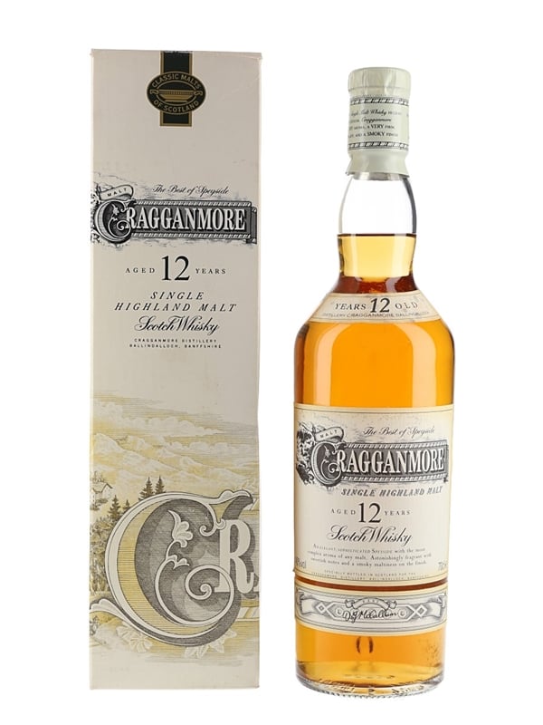 A bottle of Cragganmore 12 Year Old Single Highland Malt Scotch Whisky, the Speyside representative in Diageo's Classic Malts collection. We estimate this was bottled in the 1990s.