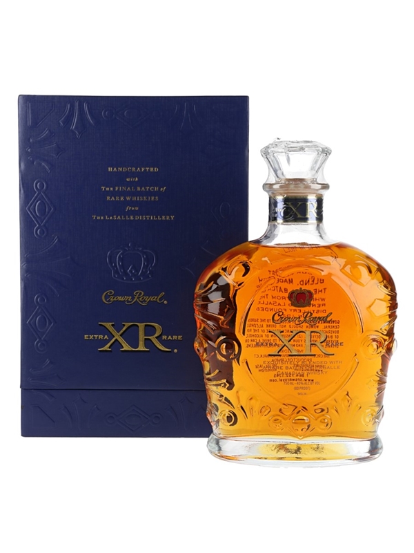 A bottle of Crown Royal Extra Rare, created using the last batch of rare whiskies from former owners Seagram's LaSalle distillery, which closed in 2003. This was imported to the US by Crown Royal Company.