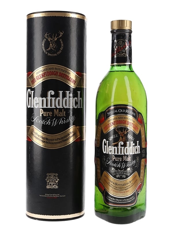 A bottle of Glenfiddich Special Old Reserve Pure Single Malt Scotch Whisky distilled and bottled by William Grant & Sons Ltd. We estimate this was bottled in the 1980s.