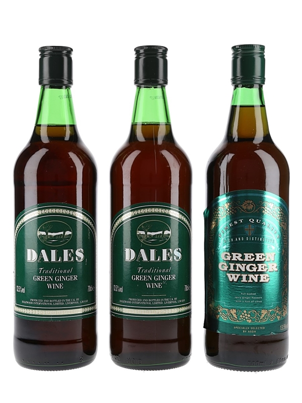 This lot contains three bottles of Green Ginger Wine from Dales and Asda.