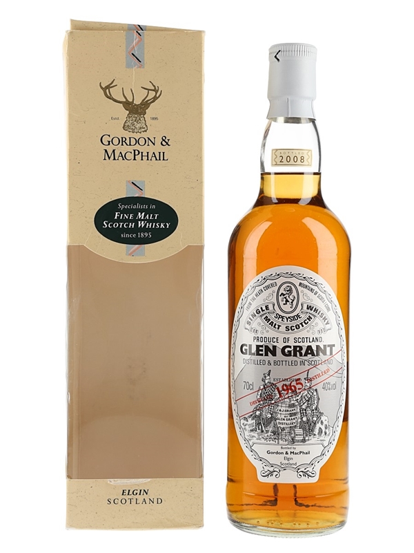 A bottle of Glen Grant 1965 Single Speyside Malt Scotch Whisky, distilled in 1965 and bottled by Gordon & MacPhail. The bottling code indicates this was bottled in 2008.