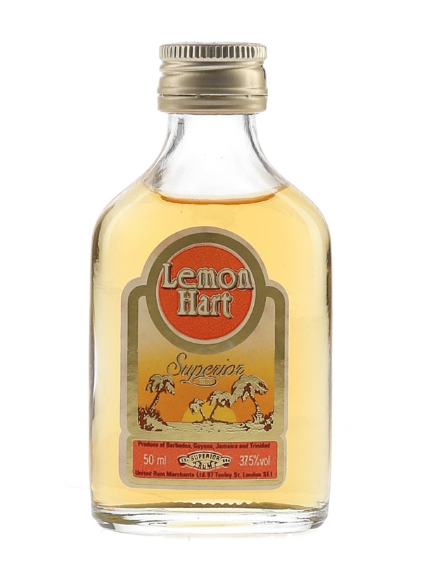 A miniature bottle of Lemon Hart Superior Rum. This was produced by United Rum Merchants Ltd., we estimate in the 1980s.
