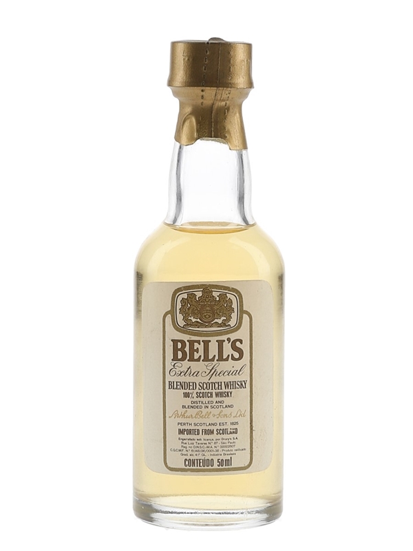 A miniature bottles of Bell's Extra Special Old Scotch Whisky, blended and bottled by Arthur Bell & Sons Ltd. Imported for the Brazilian market.