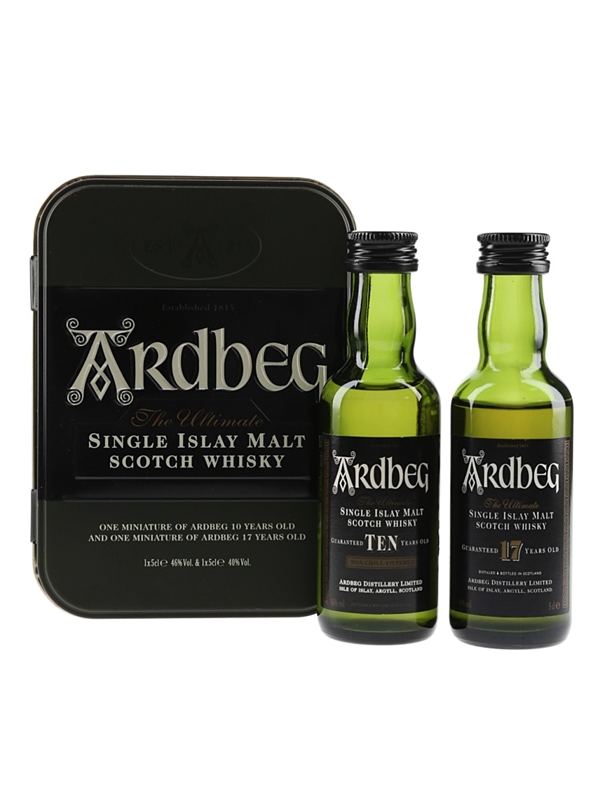 This lot contains two miniature bottles of Ardbeg The Ultimate Single Islay Malt Scotch Whisky including the 10 and the 17 Year Old and presented in the original box.
