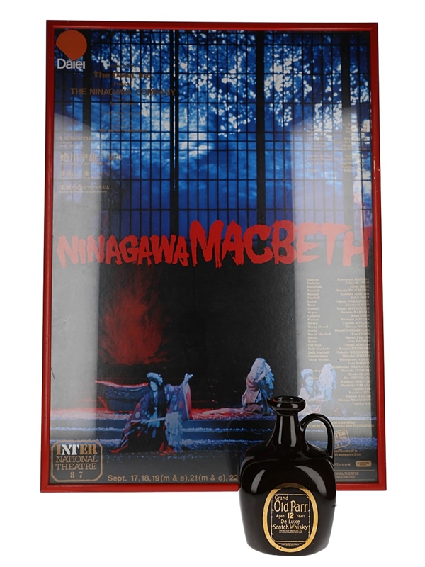 A limited edition bottle of Grand Old Parr 12 Year Old De Luxe Scotch Whisky presented in a ceramic decanter. This was specially selected to commemorate the First Night of Ninagawa's Macbeth, The National Theatre, London, 17 September 1987.