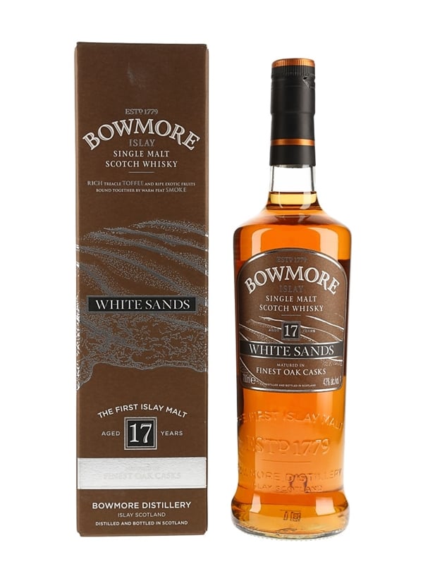 A bottle of Bowmore 17 Year Old White Sands Islay Single Malt Scotch Whisky.