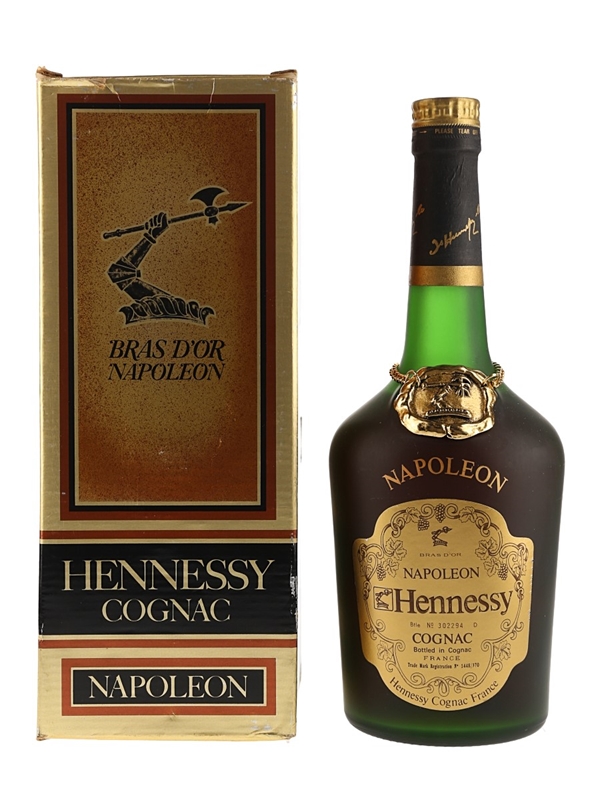 A bottle of Hennessy Bras d'Or Napoleon Cognac. We estimate this was bottled in the 1970s.