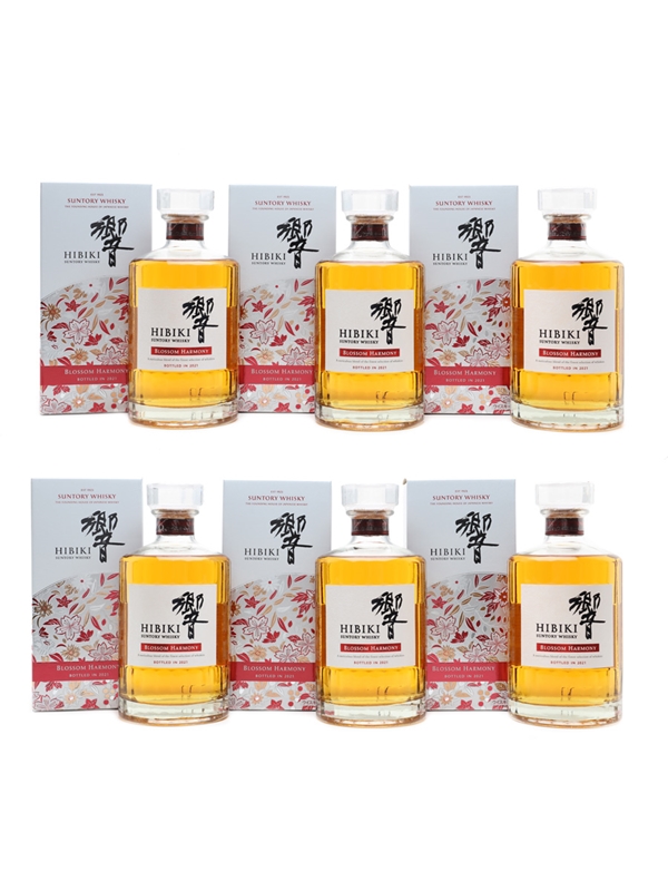 This lot contains a case of six bottles of Suntory Hibiki Blossom Harmony Whisky, finished in Sakura wood casks and bottled in 2021.