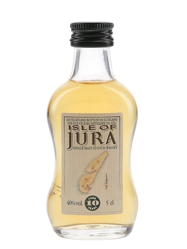 A miniature bottle of Isle Of Jura 10 Year Old Single Malt Scotch Whisky. We estimate this was bottled in the 1990s.