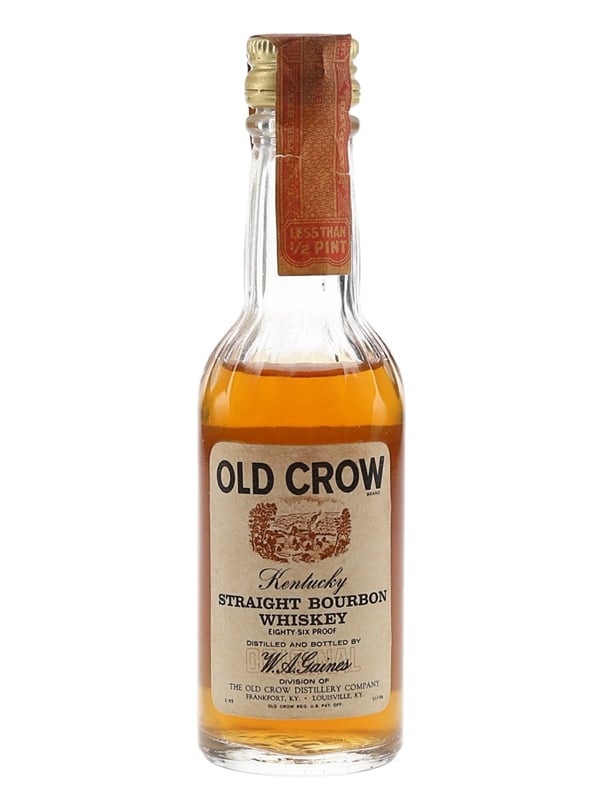 A miniature bottle of Old Crow Kentucky Straight Bourbon Whiskey. We estimate this was bottled in the 1970s.