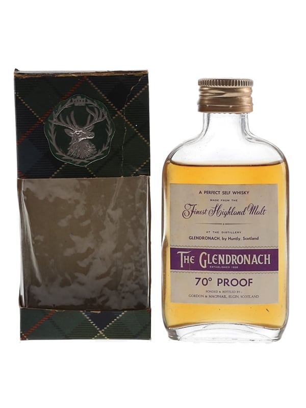 A miniature bottle of Glendronach 70° Proof, A Perfect Self Whisky made from the Finest Highland Malt. This was bonded and bottled by Gordon & MacPhail, we estimate in the 1970s.
