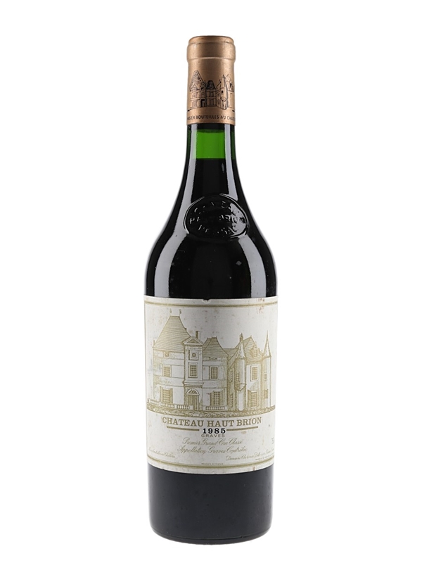 A bottle of 1985 Château Haut-Brion Premier Grand Cru Classé from the Pessac-Léognan appellation in Bordeaux.