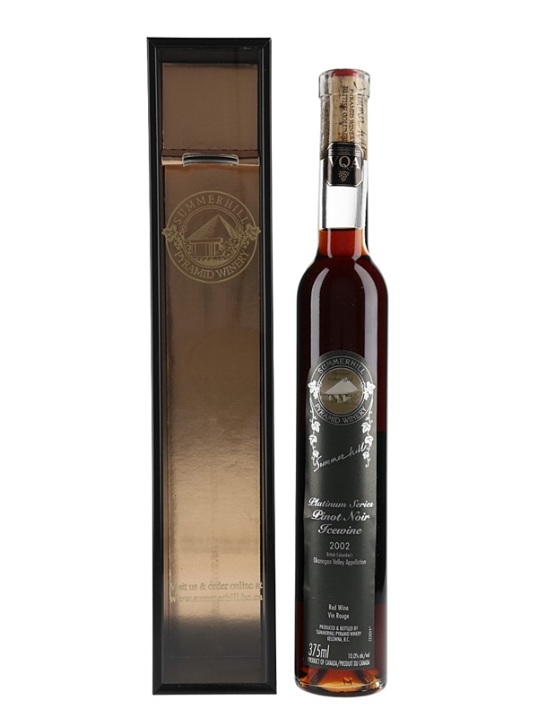 A 37.5cl bottle of 2002 Summerhill Pyramid Winery Platinum Series Pinot Noir Icewine, made from grapes grown Canada's largest organic vineyard, located in the Okanagan Valley.