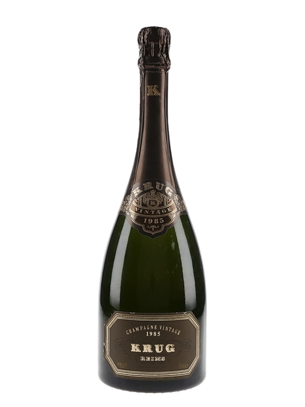 A bottle of Krug 1985 vintage Champagne.