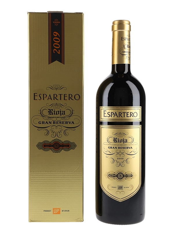 A bottle of Espartero Rioja 2009 Gran Reserva, produced in Spain.