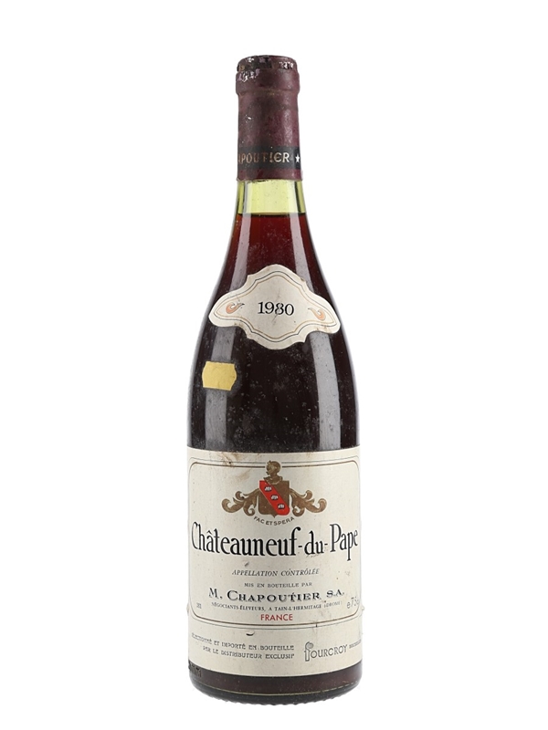 A bottle of 1980 Châteauneuf du Pape from producer M.Chapouter, from the Southern Rhône's most celebrated appellation.