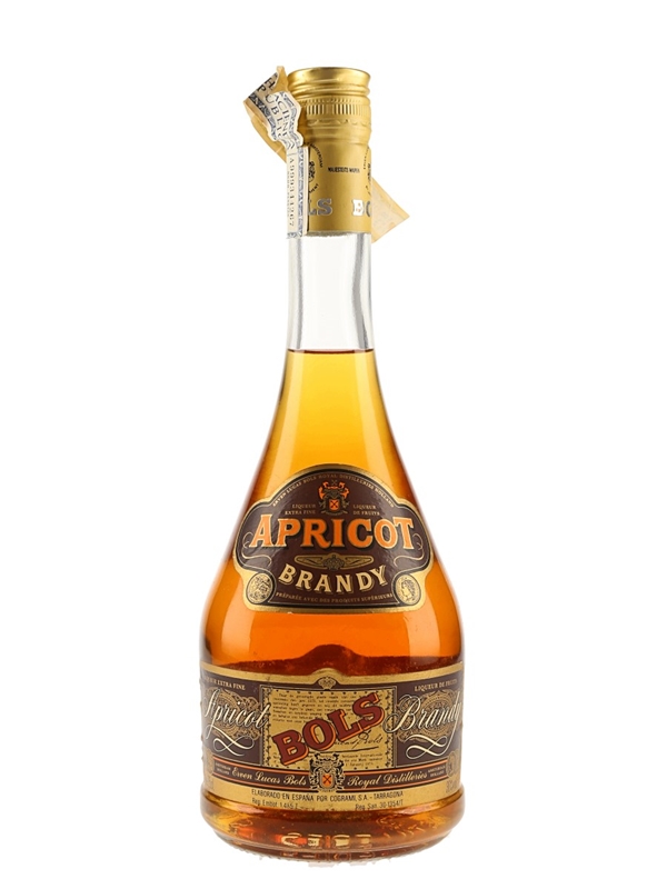 A bottle of Bols Apricot Brandy liqueur produced in Tarragona, Spain, by Cogrami. We estimate this was bottled in the 1980s.