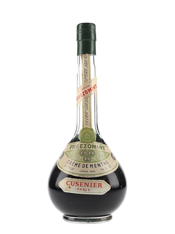 A bottle of Cusenier Freezomint Crème de Menthe. We estimate this was bottled in the 1960s.