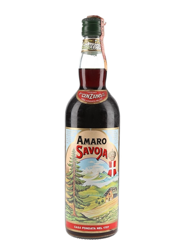 A bottle of Cinzano Amaro Savoia, a bitter tonic liqueur from Italy. We estimate this was bottled in the 1980s.