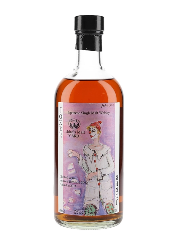 A bottle of Ichiro's Malt The Joker Japanese Single Malt Whisky from the Card series bottled at a cask strength of 57.7% ABV. This was imported to the UK by Number One Drinks Company Ltd.