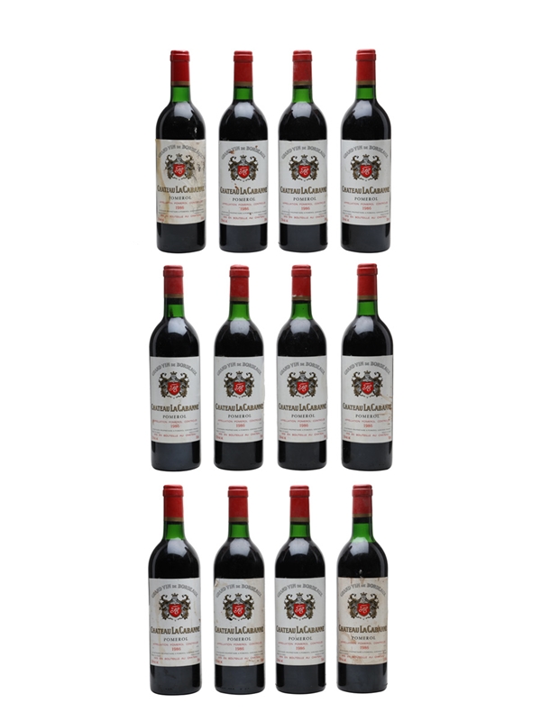 This lot contains 12 bottles of Château La Cabanne 1986 from Bordeaux's Pomerol appellation, a 10 hectare estate planted with 92% Merlot and 8% Cabernet Franc, known for its assertive tannic structure.
