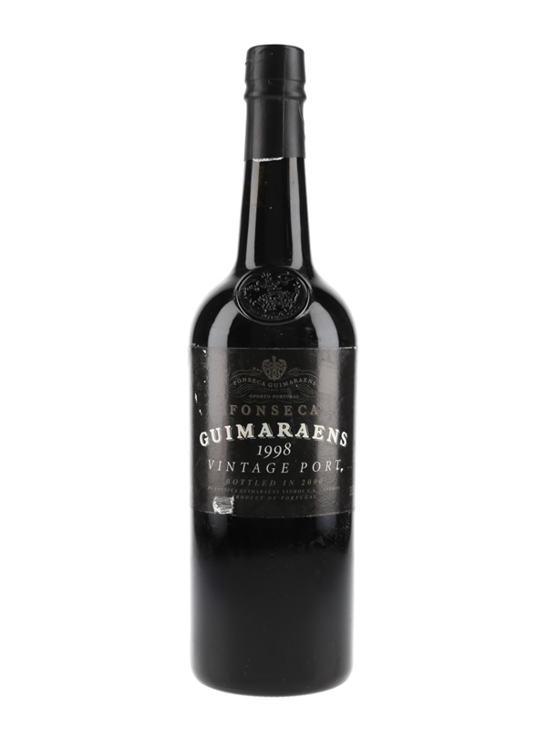 A bottle of Fonseca Guimaraens single quinta 1998 Vintage Port, bottled in 2000.