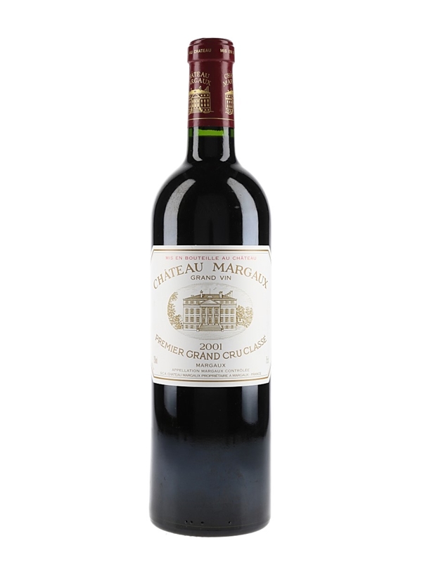 A bottle of 2001 Chateau Margaux Premier Grand Cru Classe from Bordeaux.