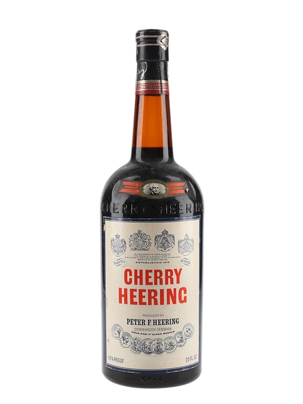 A bottle of Cherry Heering liqueur produced in Copenhagen, Denmark. We estimate this was bottled in the 1970s.