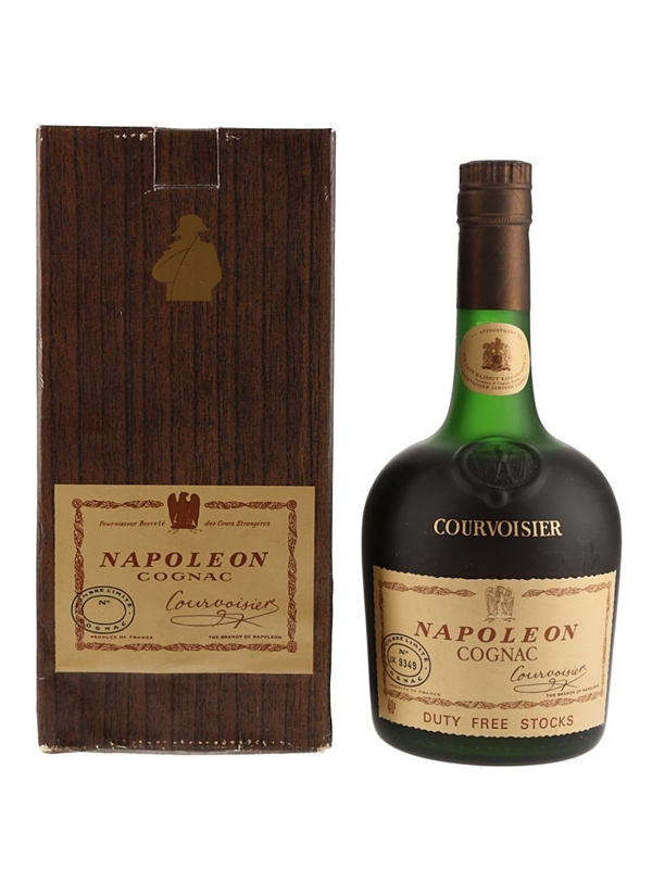 A bottle of Courvoisier Napoleon Cognac. This was bottled for the Duty Free Market, we estimate in the 1970s.