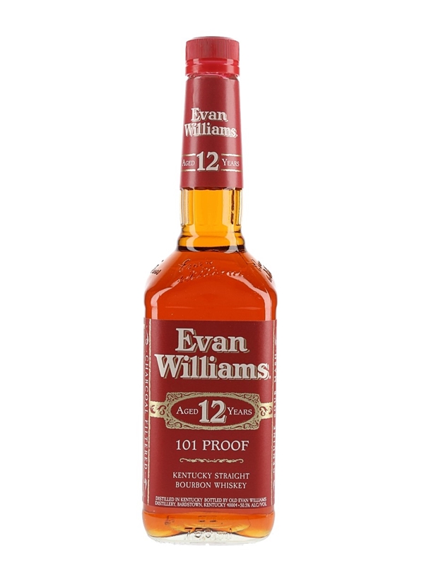 A bottle of Evan Williams 12 Year Old Kentucky straight bourbon whiskey, produced at Old Evan Williams Distillery, Bardstown. This was bottled for the Japanese market.