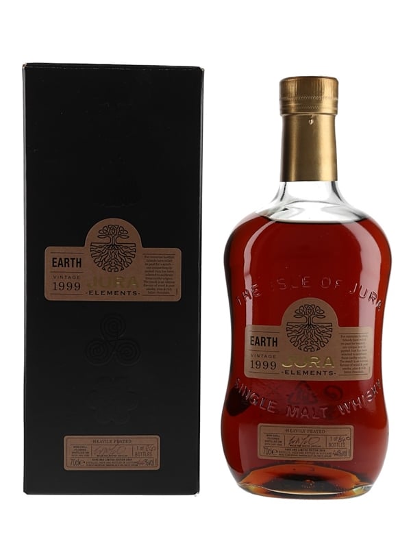A bottle of Isle of Jura 1999 from the Elements series. This edition, Earth, was distilled on 20 January 1999 and bottled at 46% ABV in 2008.