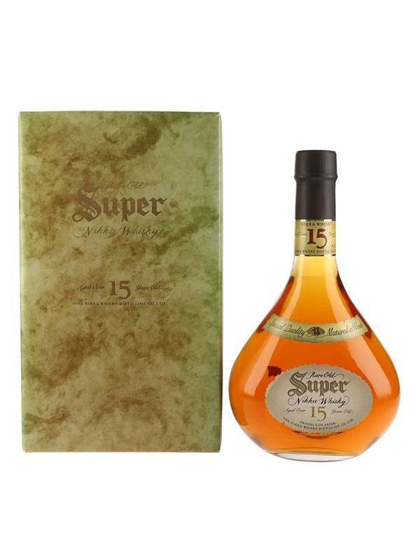 A bottle of Nikka Whisky Super Rare Old 15 Year Old, a blend of whiskies including malts from Yoichi and Miyagikyo distilleries.