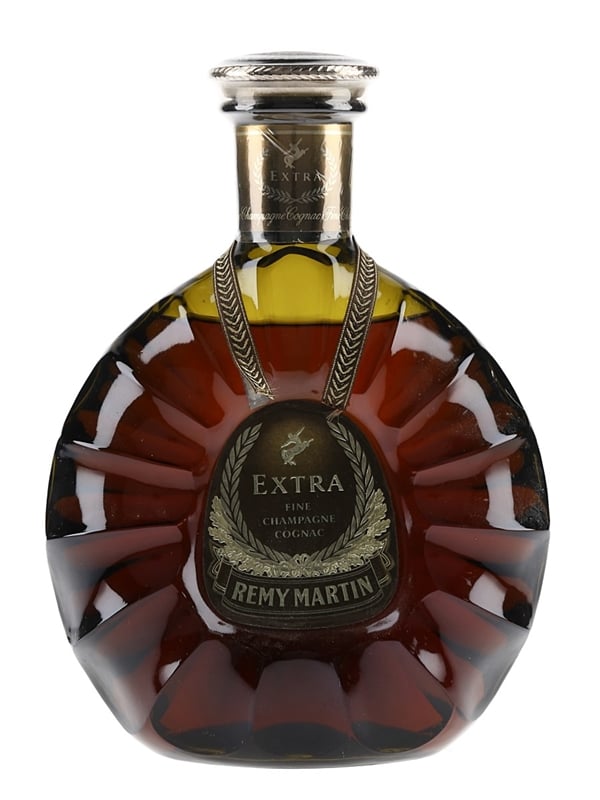 A bottle of Rémy Martin Extra Fine Champagne Cognac. We estimate this was bottled in the 1980s.
