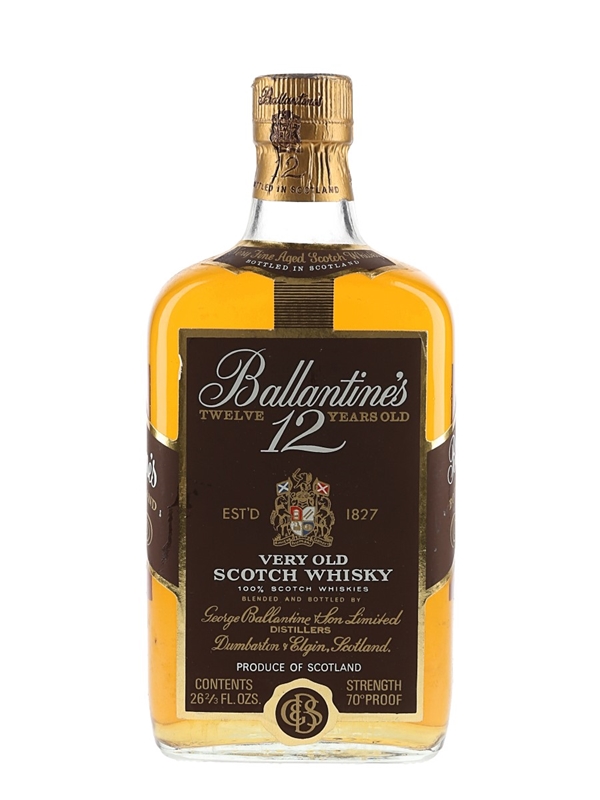 A bottle of Ballantine's 12 Year Old Very Old Scotch Whisky, blended and bottled by George Ballantine & Son Limited. We estimate this was bottled in the 1970s.