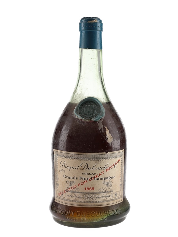 A bottle of Bisquit Dubouché 1865 Grande Fine Champagne Cognac, Selected for Great Britain. We estimate this was bottled in the 1930s.