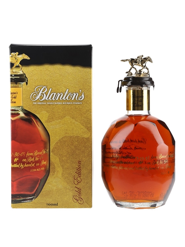 A bottle of Blanton's Gold Edition Kentucky Straight Bourbon Whiskey.