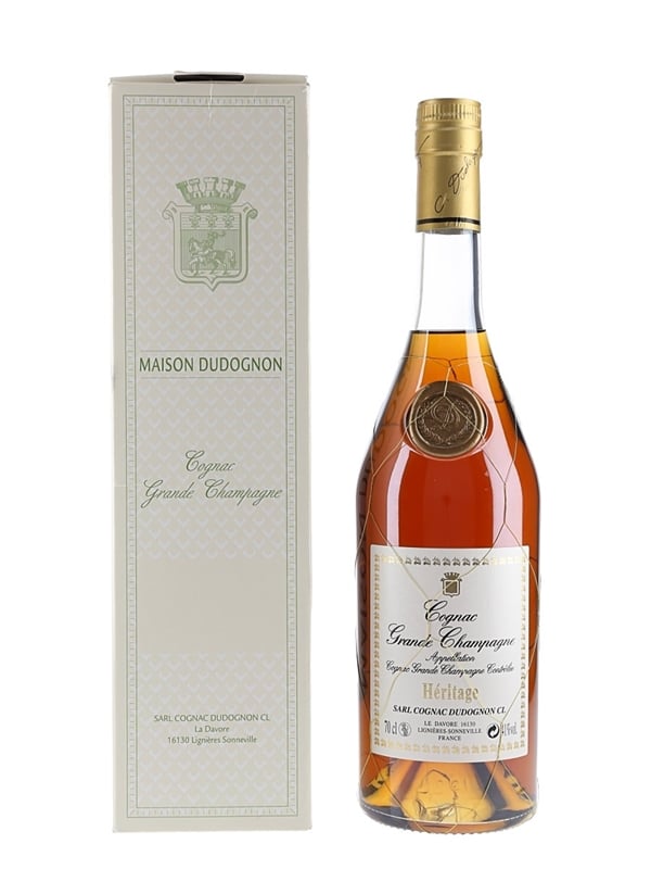 A bottle of Maison Dudognon Heritage Grande Champagne Cognac.