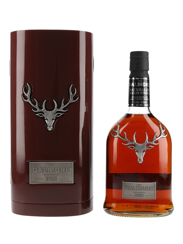 A bottle of The Dalmore 1981. This was distilled on 24 November 1981 and matured in American white oak bourbon barrels for 22 years followed by six years maturation in Gonzalez Byass Matusalem Oloroso sherry casks. This is bottle 213 of 497.