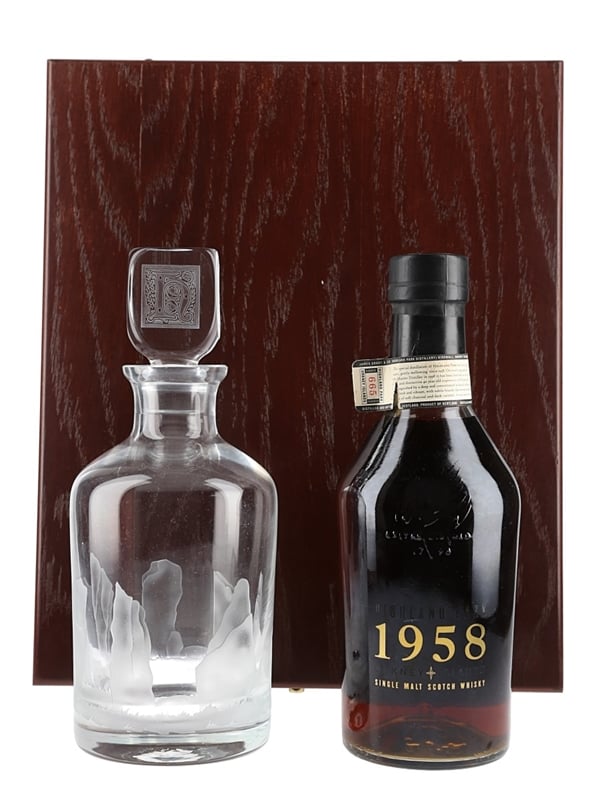 A limited edition bottle of Highland Park 1958 40 Year Old Single Malt Scotch Whisky, bottled in 1998 at 44% ABV.